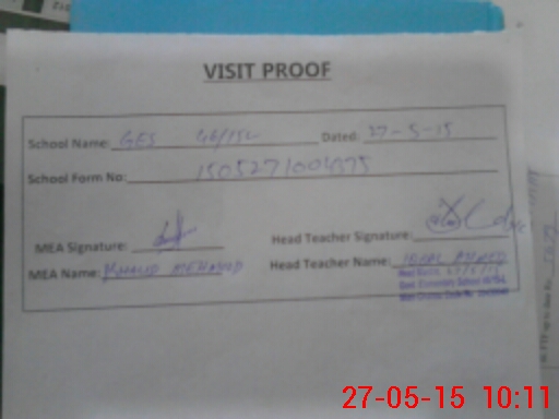 | Attendance Register | Head Teacher | MEA with School | Visit Proof |