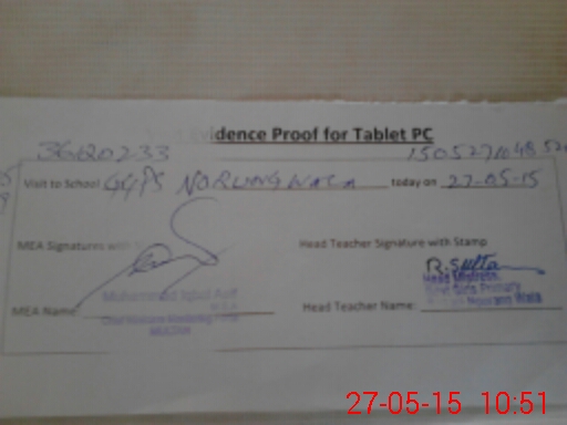 | Attendance Register | Head Teacher | MEA with School | Visit Proof |