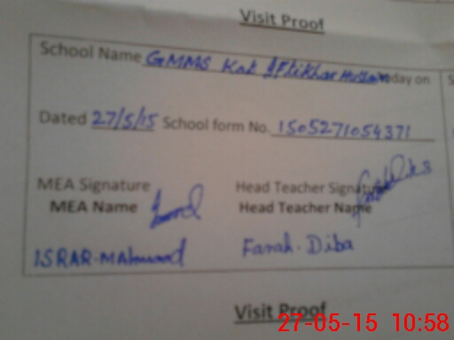 | Attendance Register | Head Teacher | MEA with School | Visit Proof |