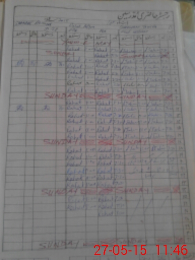 | CNIC | Full Name | Designation | R/C | Absence During Last Calender Month |