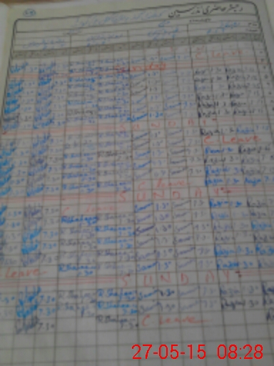| CNIC | Full Name | Designation | R/C | Absence During Last Calender Month |