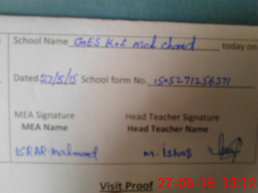 | EMIS Code: 36410192 | Name of School: GHS KOT MULCHAND, KABIRWALA | |||