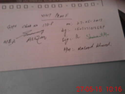 | Monitoring Date: 27-05-2015 | Start Time: 27-05-2015 09:26 AM | End Time: 27-05-2015 10:16 AM | Name of MEA: Mu**** As**** | |