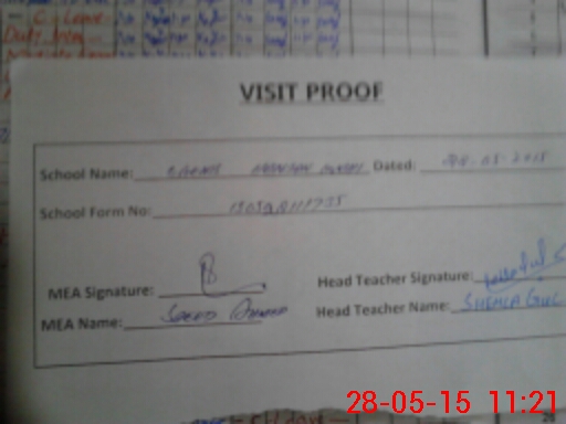 | Attendance Register | Head Teacher | MEA with School | Visit Proof |
