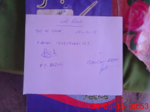 | Monitoring Date: 29-05-2015 | Start Time: 29-05-2015 07:53 AM | End Time: 29-05-2015 08:54 AM | Name of MEA: M.Af**** (R**** | |