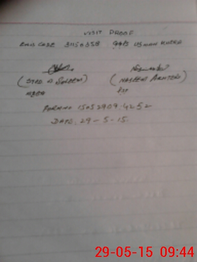 | Monitoring Date: 29-05-2015 | Start Time: 29-05-2015 09:05 AM | End Time: 29-05-2015 09:46 AM | Name of MEA: Mu**** Sa**** BN**** 33 | |