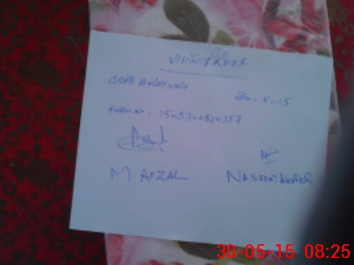 | Monitoring Date: 30-05-2015 | Start Time: 30-05-2015 07:37 AM | End Time: 30-05-2015 08:27 AM | Name of MEA: M.Af**** (R**** | |