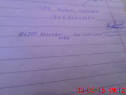 | Monitoring Date: 30-05-2015 | Start Time: 30-05-2015 08:53 AM | End Time: 30-05-2015 09:16 AM | Name of MEA: Al**** Hu**** BN**** | |