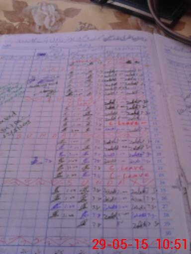 | CNIC | Full Name | Designation | R/C | Absence During Last Calender Month |