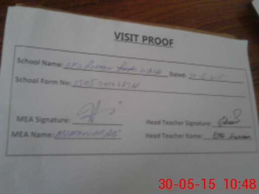 | Attendance Register | Head Teacher | MEA with School | Visit Proof |