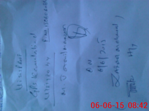 | Monitoring Date: 06-06-2015 | Start Time: 06-06-2015 08:28 AM | End Time: 06-06-2015 08:44 AM | Name of MEA: Re**** Ja**** ma**** | |