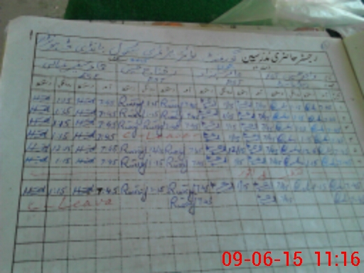 | CNIC | Full Name | Designation | R/C | Absence During Last Calender Month |
