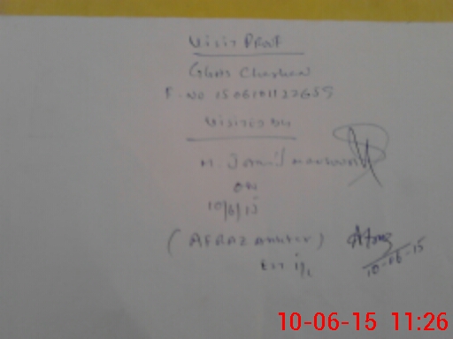 | Monitoring Date: 10-06-2015 | Start Time: 10-06-2015 11:15 AM | End Time: 10-06-2015 11:36 AM | Name of MEA: Re**** Ja**** ma**** | |