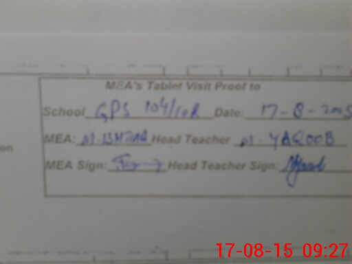 | Attendance Register | Head Teacher | MEA with School | Visit Proof |