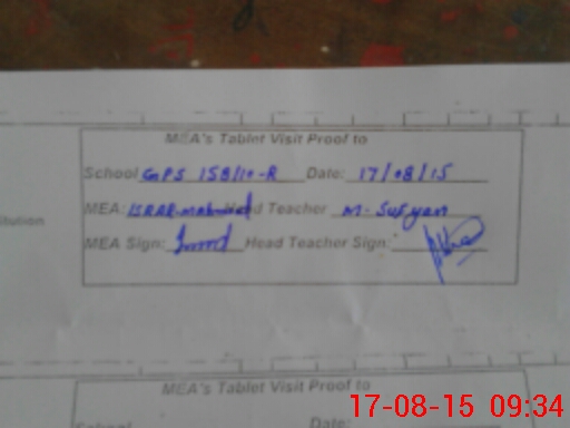 | Attendance Register | Head Teacher | MEA with School | Visit Proof |