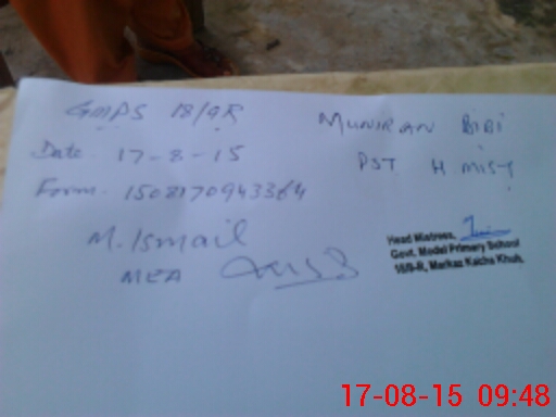 | Name: AM**** YA**** Designation: (School Headmaster's/Headmistress's) PST Phone/Cell Number: 03**** |