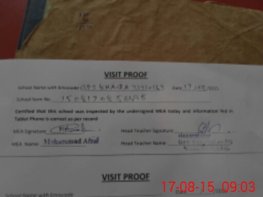 | Attendance Register | Head Teacher | MEA with School | Visit Proof |