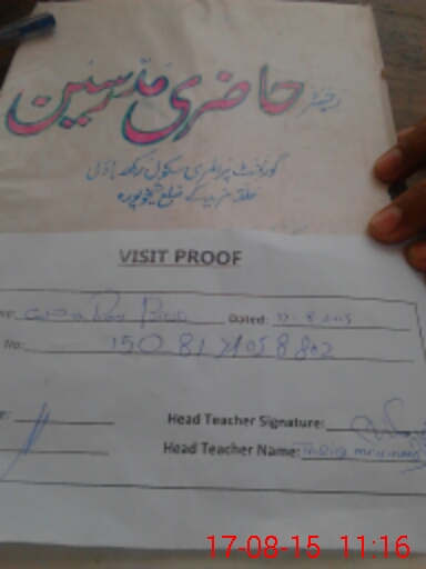 | Attendance Register | Head Teacher | MEA with School | Visit Proof |