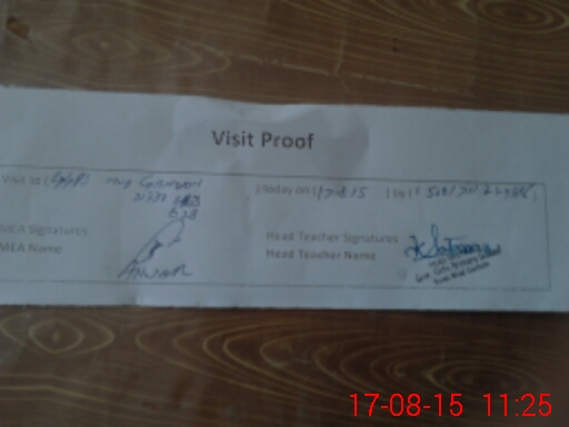 | Attendance Register | Head Teacher | MEA with School | Visit Proof |