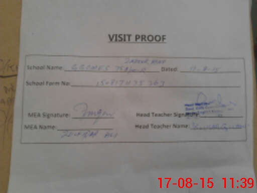 | Attendance Register | Head Teacher | MEA with School | Visit Proof |