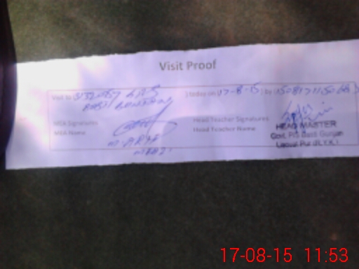 | Attendance Register | Head Teacher | MEA with School | Visit Proof |