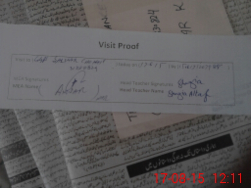 | Attendance Register | Head Teacher | MEA with School | Visit Proof |
