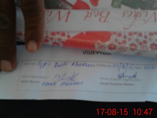 | Attendance Register | Head Teacher | MEA with School | Visit Proof |