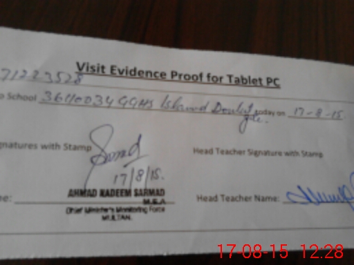 | Attendance Register | Head Teacher | MEA with School | Visit Proof |
