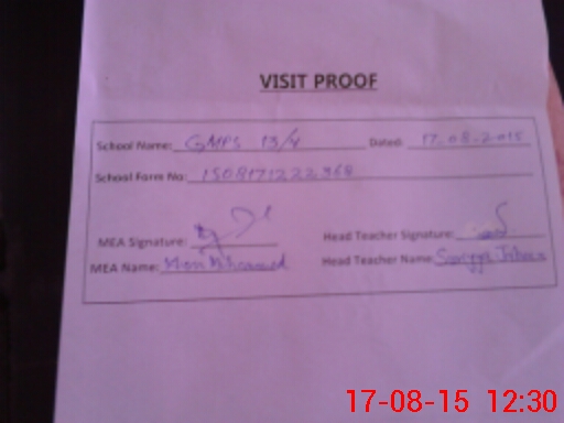 | EMIS Code: 36410346 | Name of School: GGPS 13/V, KABIRWALA | |||