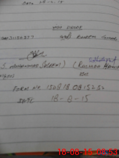 | Monitoring Date: 18-08-2015 | Start Time: 18-08-2015 08:22 AM | End Time: 18-08-2015 08:56 AM | Name of MEA: Mu**** Sa**** BN**** 33 | |