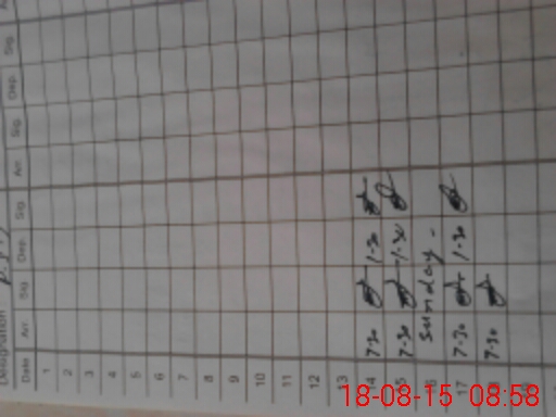 | Monitoring Date: 18-08-2015 | Start Time: 18-08-2015 08:39 AM | End Time: 18-08-2015 09:01 AM | Name of MEA: Mu**** Ja**** An**** | |