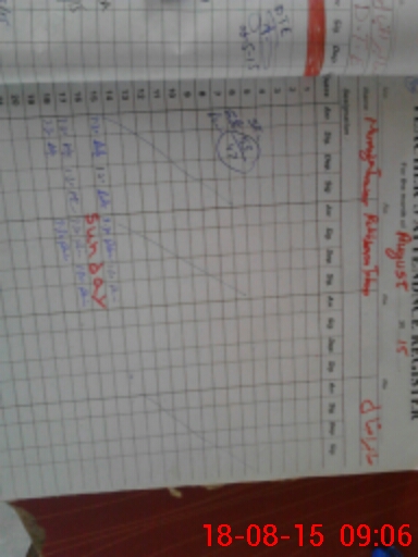 | Monitoring Date: 18-08-2015 | Start Time: 18-08-2015 08:55 AM | End Time: 18-08-2015 09:09 AM | Name of MEA: TE**** KH**** MA**** (R**** 04**** | |