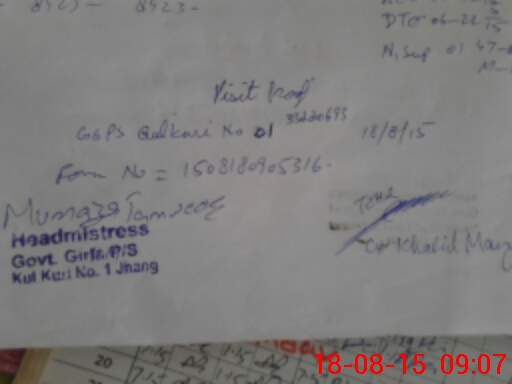| Name: Ru**** Ja**** Designation: (School Headmaster's/Headmistress's) PST Phone/Cell Number: 03**** |