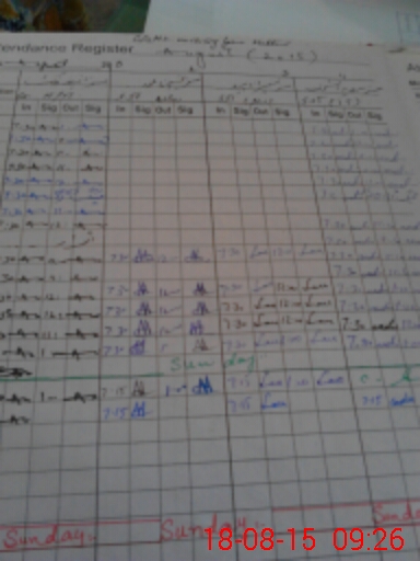 | Monitoring Date: 18-08-2015 | Start Time: 18-08-2015 08:34 AM | End Time: 18-08-2015 09:27 AM | Name of MEA: AH**** NA**** SA**** | |