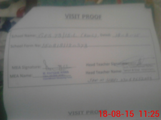 | Attendance Register | Head Teacher | MEA with School | Visit Proof |
