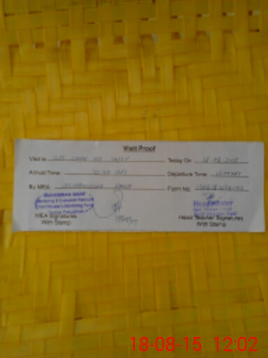 | Attendance Register | Head Teacher | MEA with School | Visit Proof |