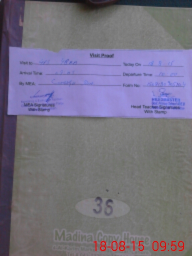 | Attendance Register | Head Teacher | MEA with School | Visit Proof |