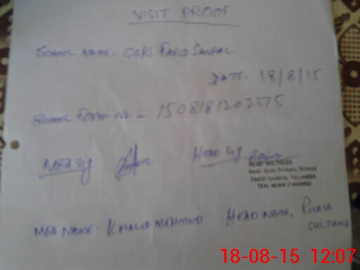 | Attendance Register | Head Teacher | MEA with School | Visit Proof |