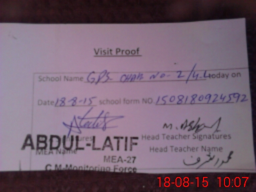 | Attendance Register | Head Teacher | MEA with School | Visit Proof |