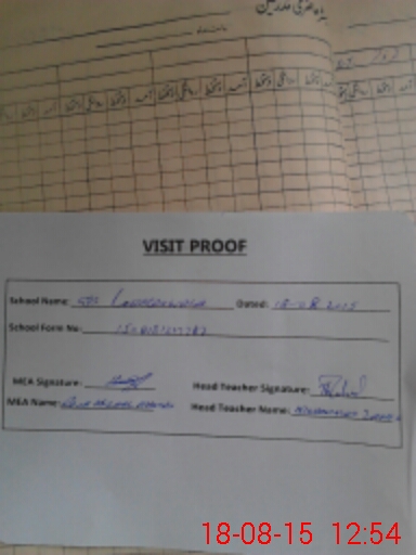 | Attendance Register | Head Teacher | MEA with School | Visit Proof |