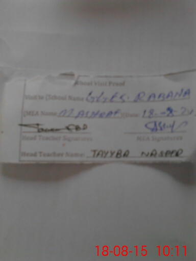 | Attendance Register | Head Teacher | MEA with School | Visit Proof |