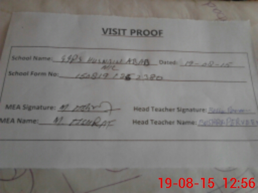 | Attendance Register | Head Teacher | MEA with School | Visit Proof |
