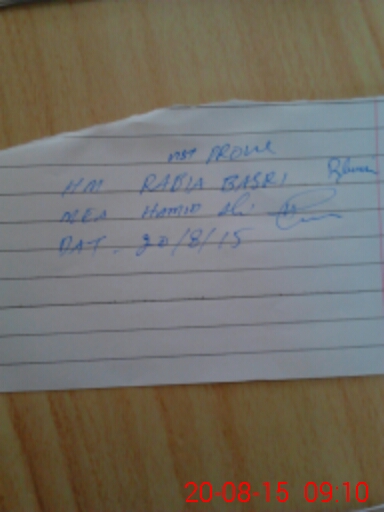 | Monitoring Date: 20-08-2015 | Start Time: 20-08-2015 08:37 AM | End Time: 20-08-2015 09:12 AM | Name of MEA: HA**** AL**** SH**** (L**** | |