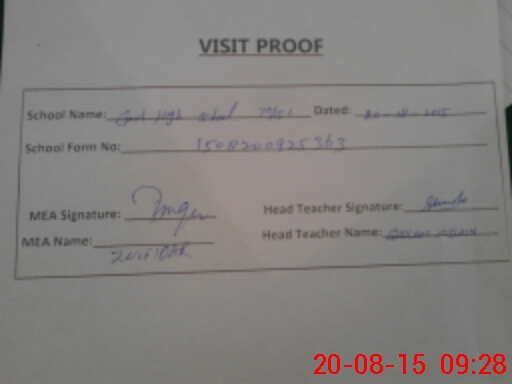 | Attendance Register | Head Teacher | MEA with School | Visit Proof |