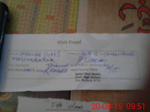 | Attendance Register | Head Teacher | MEA with School | Visit Proof |