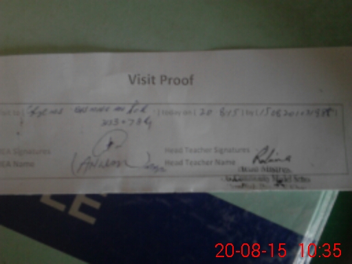| Attendance Register | Head Teacher | MEA with School | Visit Proof |