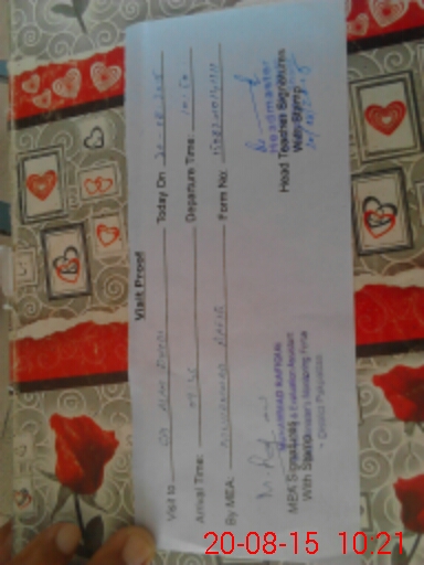 | Attendance Register | Head Teacher | MEA with School | Visit Proof |