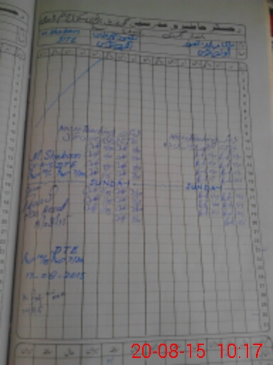 | CNIC | Full Name | Designation | R/C | Absence During Last Calender Month |