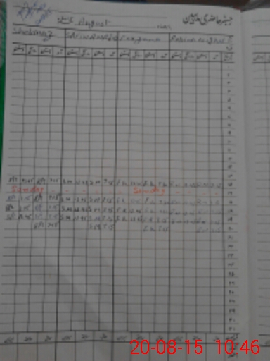 | CNIC | Full Name | Designation | R/C | Absence During Last Calender Month |