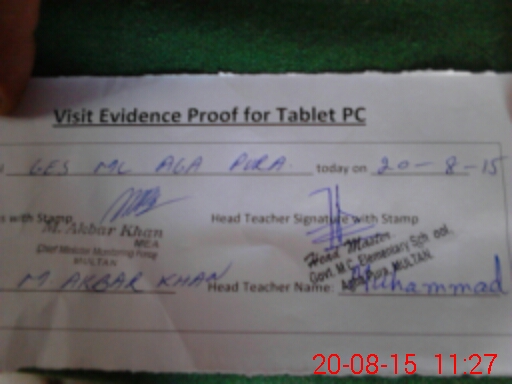 | Attendance Register | Head Teacher | MEA with School | Visit Proof |
